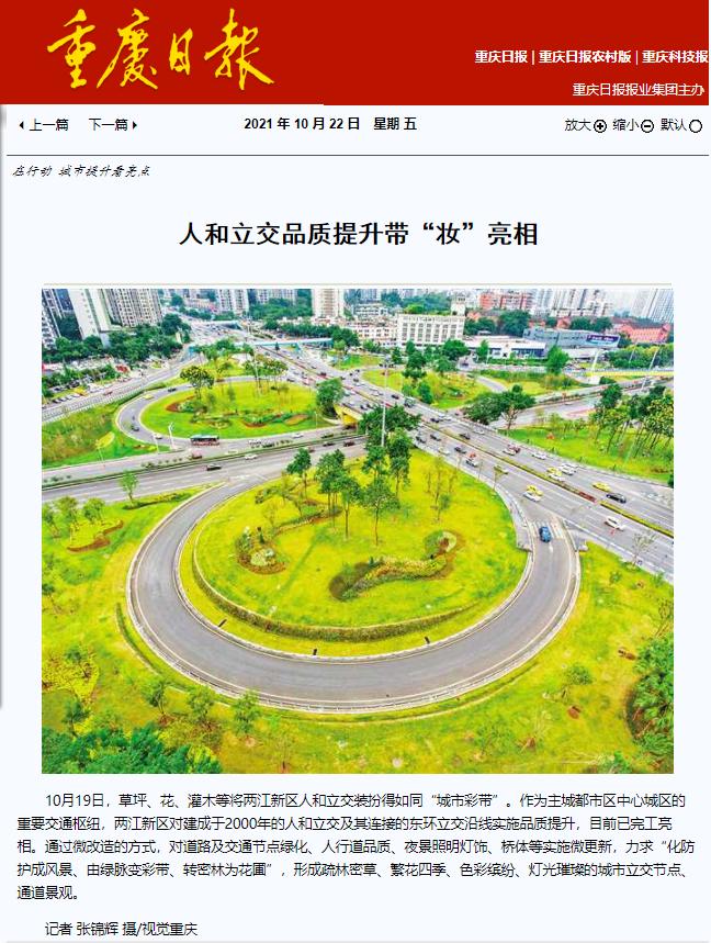 《重慶日報》報道兩江建設(shè)公司承建的人和立交品質(zhì)提升工程