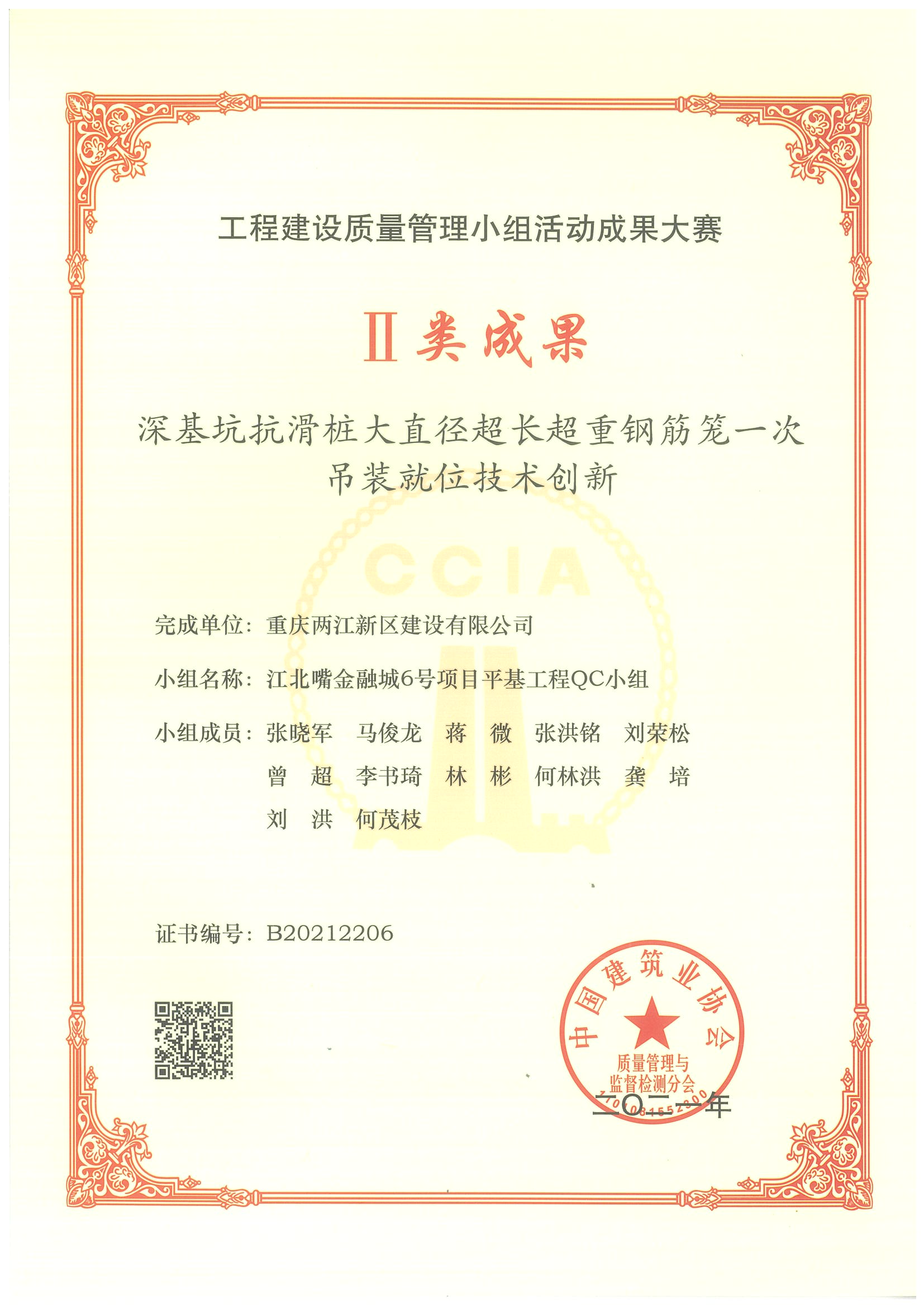 全國建設(shè)質(zhì)量管理小組活動成果大賽二類成果