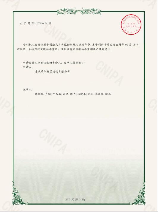 兩江建設(shè)公司又榮獲一項(xiàng)國(guó)家知識(shí)產(chǎn)權(quán)局實(shí)用新型專利和證書
