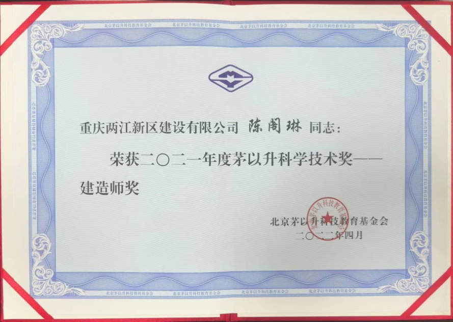 公司陳閣琳同志榮獲2021年度茅以升科學(xué)技術(shù)獎(jiǎng)--建造師獎(jiǎng)