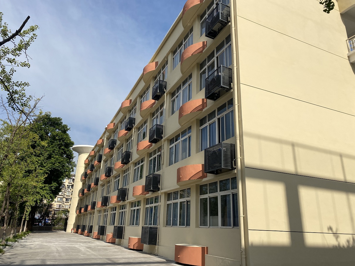 以其中的白馬小學(xué)(現(xiàn)更名為禮博小學(xué))為例,該校整體以杏仁白為主題基調(diào),局部用深棕色進(jìn)行線條點(diǎn)綴,呈現(xiàn)現(xiàn)代簡(jiǎn)潔的明快風(fēng)格。從幾句簡(jiǎn)單的描述,就能感受到校區(qū)不俗的顏值,但要在緊迫的工期內(nèi)呈現(xiàn)出高顏值,這背后是兩江建設(shè)人用智慧和汗水換來(lái)的。
