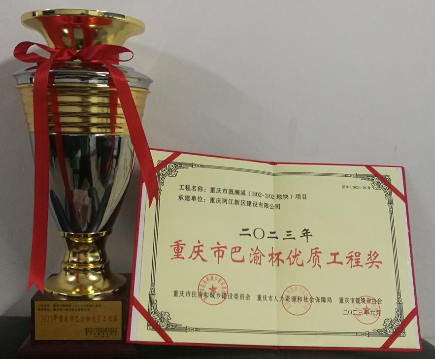 為樹立典型,進(jìn)一步引導(dǎo)激勵(lì)廣大建筑業(yè)企業(yè)以及建設(shè)者奮進(jìn)新征程、建功新時(shí)代、建設(shè)新重慶,營造“百年大計(jì)、質(zhì)量第一”氛圍,推動(dòng)全市建筑業(yè)高質(zhì)量發(fā)展,由市住建委、市人社局、市建協(xié)三部門對(duì)全市建造出一大批優(yōu)質(zhì)精品工程進(jìn)行了層層嚴(yán)格篩選。最后,由兩江建設(shè)公司承建的重慶市溉瀾溪(B02-3/02地塊)項(xiàng)目榮獲了“2023年重慶市巴渝杯優(yōu)質(zhì)工程獎(jiǎng)”,該獎(jiǎng)項(xiàng)為全市工程最高獎(jiǎng)項(xiàng)。
