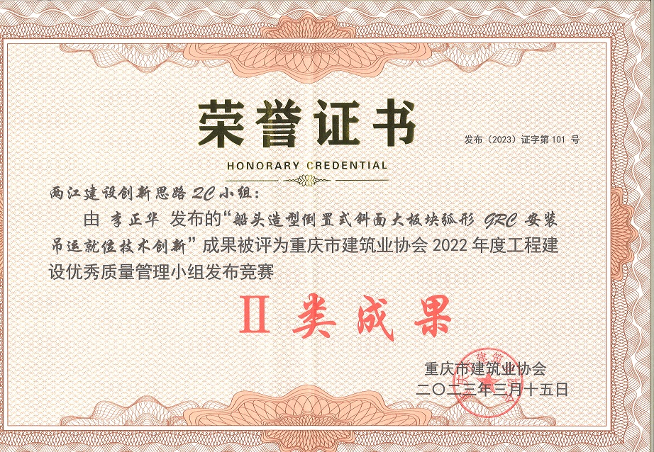 重慶市QC成果獎(jiǎng)項(xiàng)