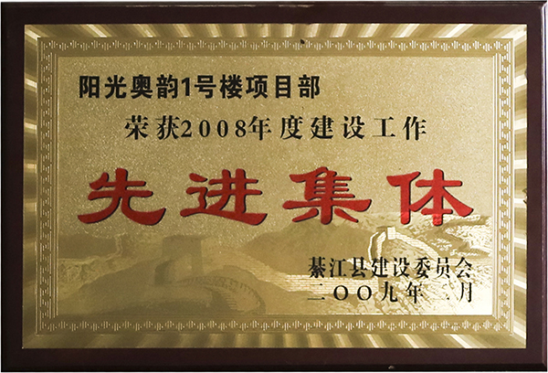 陽光奧韻1號樓項(xiàng)目部榮獲2008年..